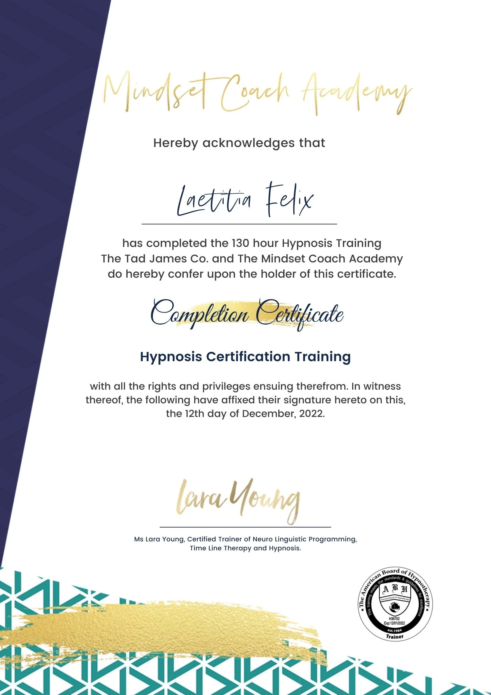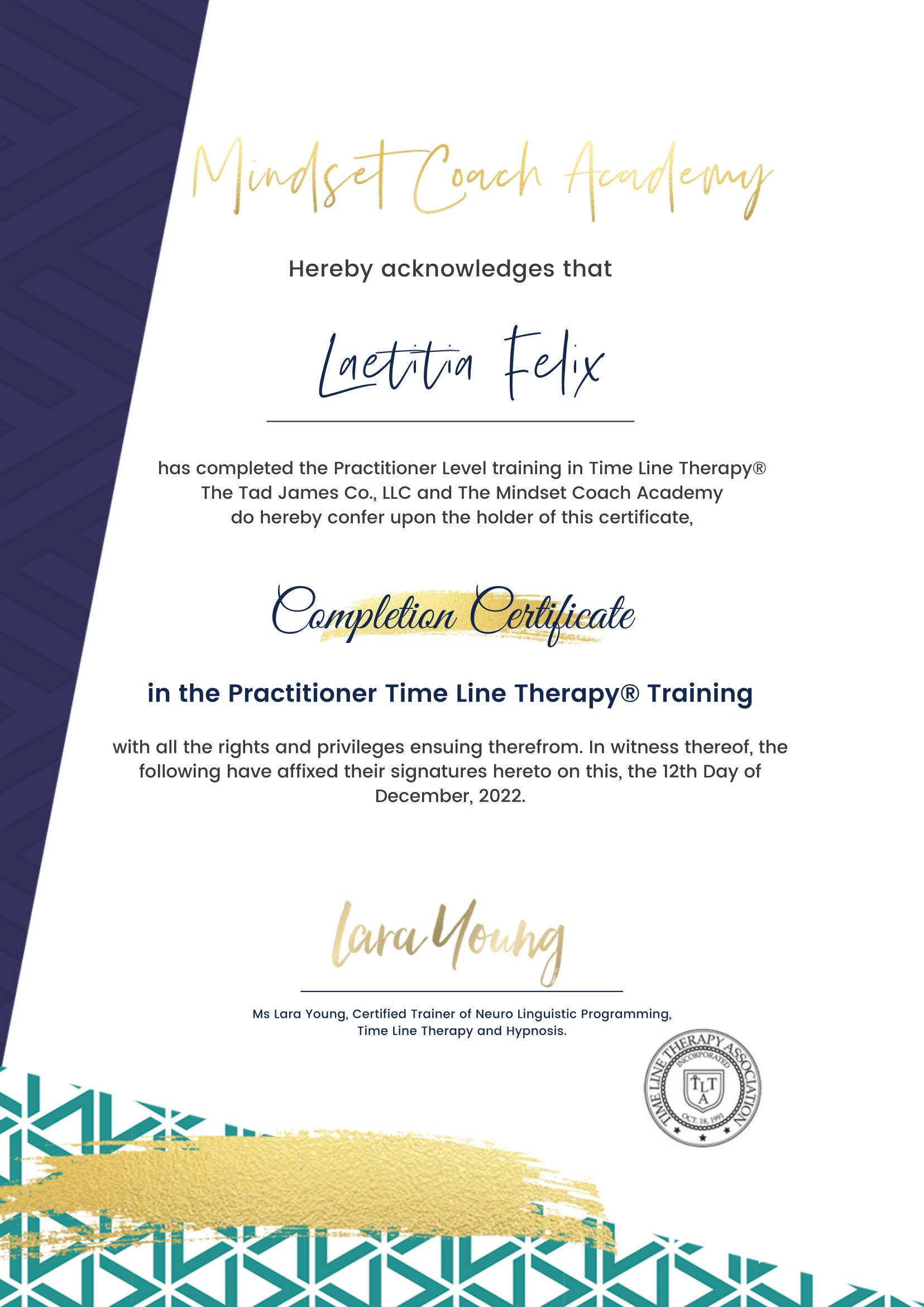 I wanted the right tools to create real transformation. That is when I decided to train and certify as accredited Mindset Coach, EFT, NLP, TimeLine Therapy & Hypnosis practitioner.